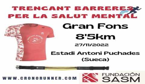 El diumenge 27 de novembre, la Fundació SASM de Sueca que atén persones amb malaltia mental celebrarà la quarta edició de la Carrera i el Gran Fons 'Trencant barreres per la salut mental', una jornada esportiva que té per objecte “mostrar, des d'una òptica oberta i multidisciplinària, la importància de l'esport com a eina d'intervenció en els processos de recuperació de les persones amb trastorn mental greu”, en paraules dels organitzadors.