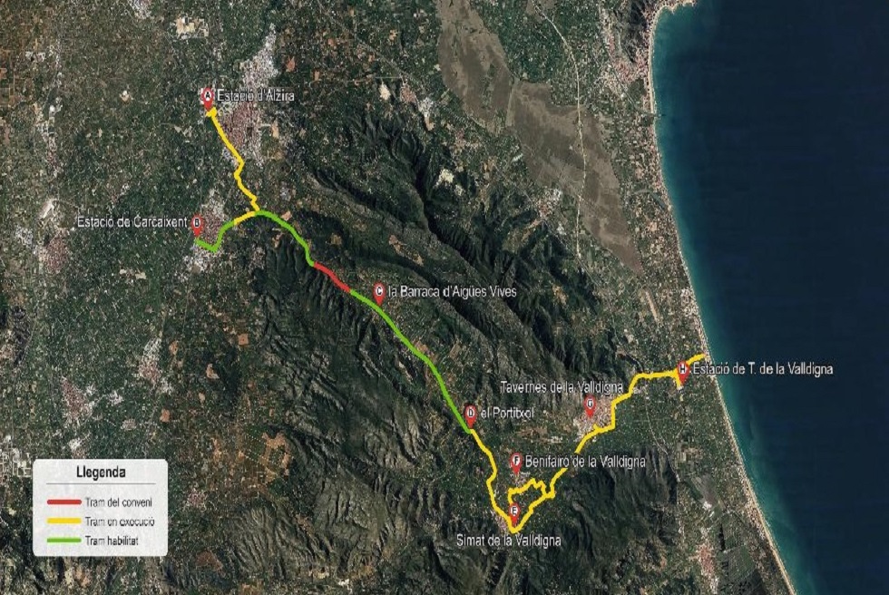 En resum, falten 4 trams per a unir l’antiga vieta des de Carcaixent fins a Tavernes: 1 km al començament de Carcaixent, la passare·la, la rodona passant la Barraca i tot el tram de la Valldigna.
