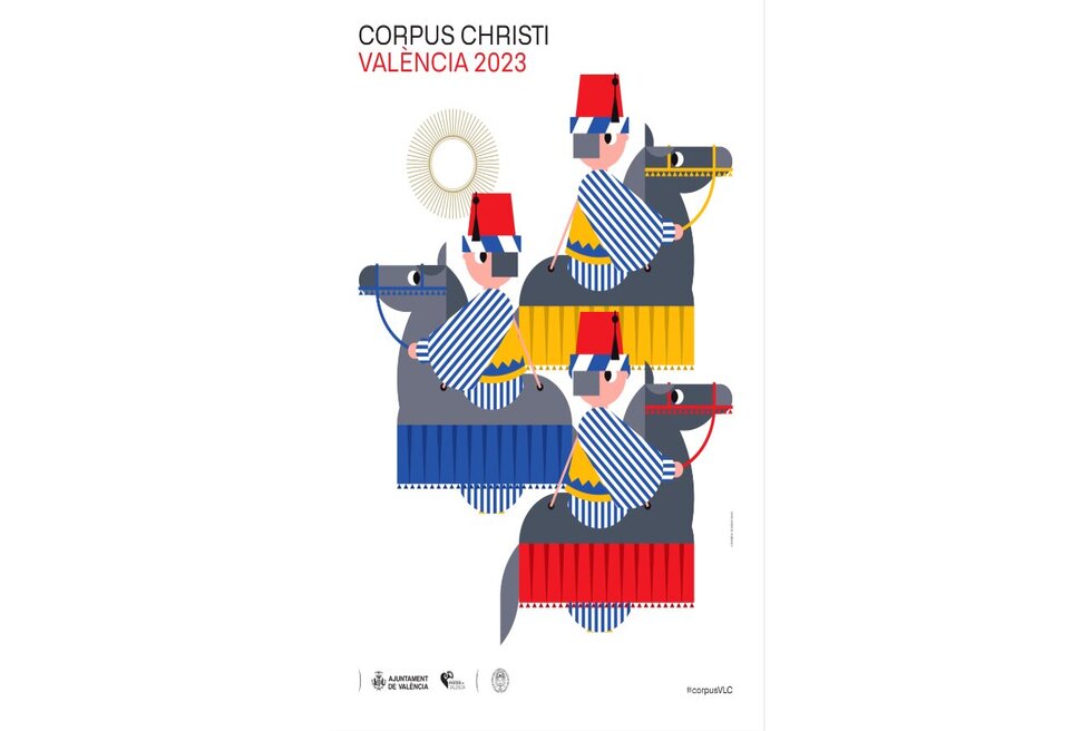 Dijous, 01 de Juny del 2023 Tiempo de lectura:El cartell anunciador de la festa del Corpus d’enguany, obra de l’artista plàstic i dissenyador Eugenio Simó, evoca la cavalcada del convit. Esta imatge gràfica, que es presenta aquest dimecres, anima a la ciutadania a participar i gaudir d’esta celebració. A més la festivitat estarà acompanyada per la realització de diverses activitats divulgatives, que donen a conéixer els aspectes més desconeguts del Corpus.