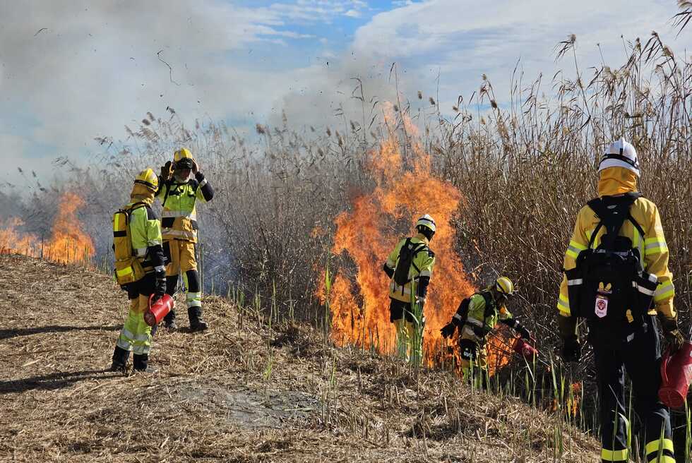 Dimecres, 24 de Gener del 2024 Tiempo de lectura:La Conselleria de Justícia i Interior, a través de l'Agència Valenciana de Seguretat i Emergències (AVSRE) i la Direcció General de Prevenció d'Incendis Forestals, ha dut a terme la crema prescrita de deu hectàrees de canyissars al Parc Natural del Fondo d'Elx-Crevillent.