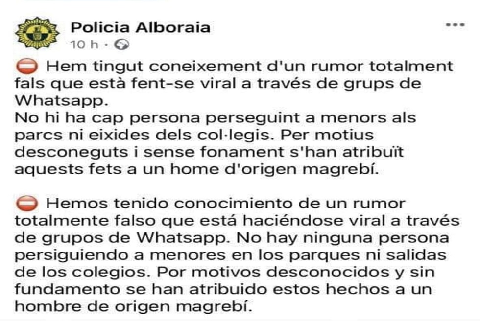 La notícia infundada i reexpedida per whatsapp que a corregut com la pólvora fent-se viral va arribar també a altres localitats que no estan a la Ribera com és Alboraia.