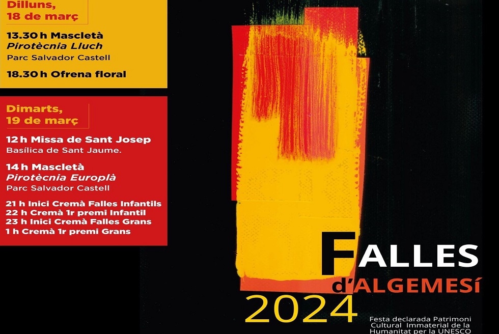 Les Falles d'Algemesó 2024 comptaran amb un cicle de quatre mascletaes i un espectacle pirotècnic nocturn.