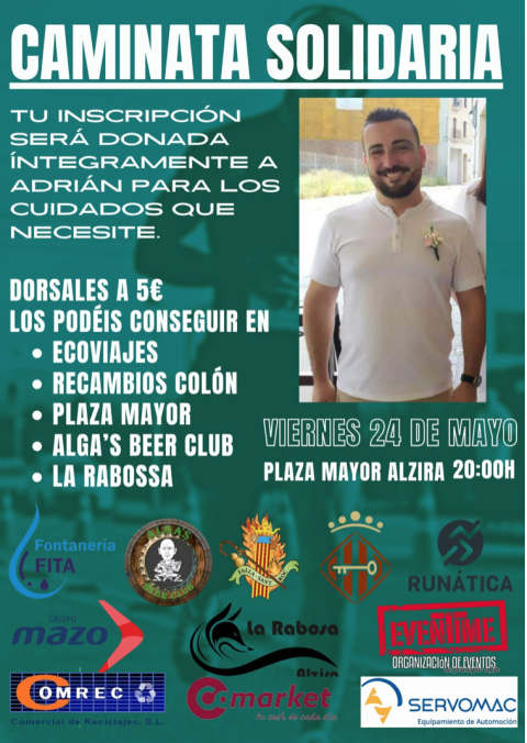 Dissabte, hi haurà un concert solidari. Actuarà el multiinstrumentista Abraham Cupeiro junt amb la Societat Musical d’Alzira. L’agrupació musical, amb col·laboració de la Regidoria de Cultura de l’Ajuntament d’Alzira, ha decidit que el concert del dissabte 18 de maig a les 19:30 hores al Gran Teatre d’Alzira siga a benefici de l’alzireny Adrián Fernández i ha establit una entrada única de 5 euros. Les entrades es podran adquirir en la taquilla del Gran Teatre (el dijous 16 de maig de 19:30 a 21 h, i el mateix dia del concert a partir de les 18:30 h).Tota la recaptació del concert (i els donatius que hi puguen haver) l’ingressarà íntegrament la Federació de Comparses de Moros i Cristians La Vila d’Alzira, en el compte bancari de la família d’Adrián, per a sufragar les despeses hospitalàries ocasionades per la situació d’este.