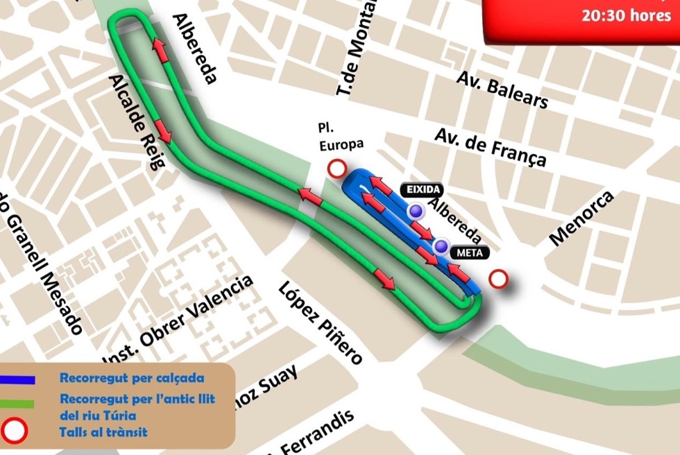 Dimecres, 12 de Juny del 2024 Tiempo de lectura:L’Ajuntament de València ha previst un dispositiu de trànsit per a la carrera “Ponle freno”, inclosa en el circuit de carreres de l’any 2024. La cursa, que destina íntegrament tots els seus fons a les víctimes de trànsit i a la conscienciació en matèria de seguretat viària, se celebrarà dissabte, 15 de juny, a les 20:30 hores, al passeig de l’Albereda, baixarà al llit del Túria i tornarà a pujar a l’Albereda, on es troba la línia de meta. Per este motiu, dissabte romandrà tallada l’Albereda entre la plaça d’Europa i el Pont de l’Assut de l’Or des de les 12 hores del migdia fins a les 00:30 hores de la matinada de diumenge, 16 de juny.