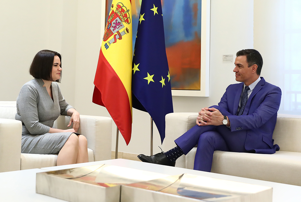 Per a Pedro Sánchez, "Espanya i Bielorússia pot ser que estiguen lluny geogràficament, però ens sentim més units que mai en la defensa dels valors i principis" que representa *Svletana *Tijanokskata. "Compartim la creença en una solució basada en el diàleg nacional inclusiu, seguit d'eleccions supervisades per l'OSCE".