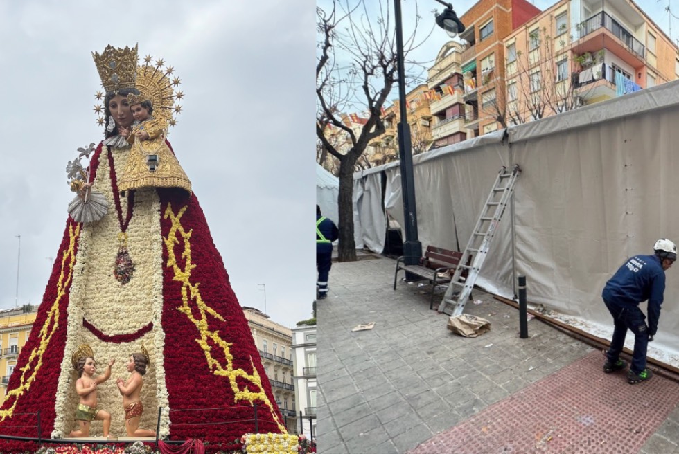 Tot i el final de la festa, encara són moltes les persones que s’acosten a València per a vore a la Mare de Déu dels Desemparats i contemplar el mant floral de l’Ofrena, un dels últims símbols visibles de les Falles.