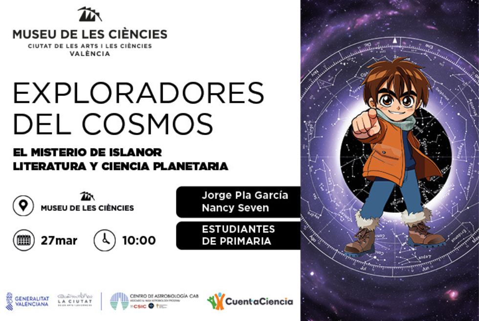 ‘Exploradors del cosmos’ començarà amb la presentació del llibre El misterio de Islanor a càrrec de la seua autora Sonia Barbero (Nancy Seven), divulgadora científica amb més de 20 anys de vinculació a l’astronomia. El misterio de Islanor és una aventura il·lustrada que proposa aprendre ciència a través del joc i l’exploració.