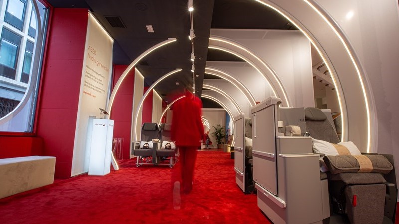 L'aerolínia Iberia celebra el Dia de València en el seu espai pop up de Gran Via, pel qual passen diàriament 2.600 persones, amb motiu del 85 aniversari de la connexió entre totes dos ciutats